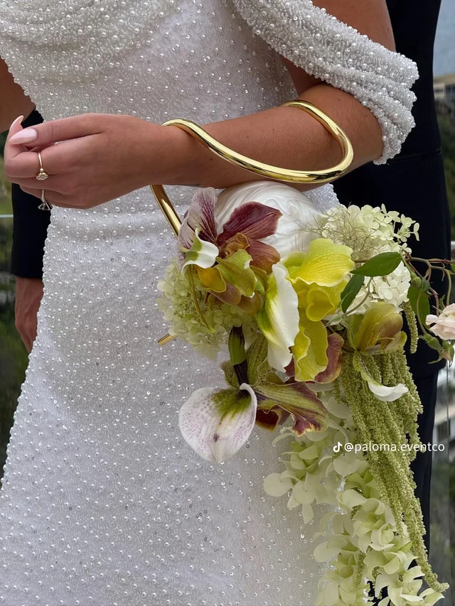 Pour un effet spectaculaire, certaines mariées optent pour un bouquet en cascade, où les fleurs tombent en un mouvement fluide et naturel. Ce style majestueux est parfait pour les robes de princesse ou les cérémonies grandioses.